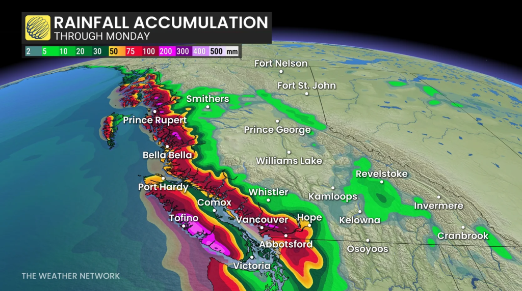 加拿大环境部表示,本周末一股大气河流将袭击BC省南海岸,与此同时,暴雨将继续袭击北海岸。