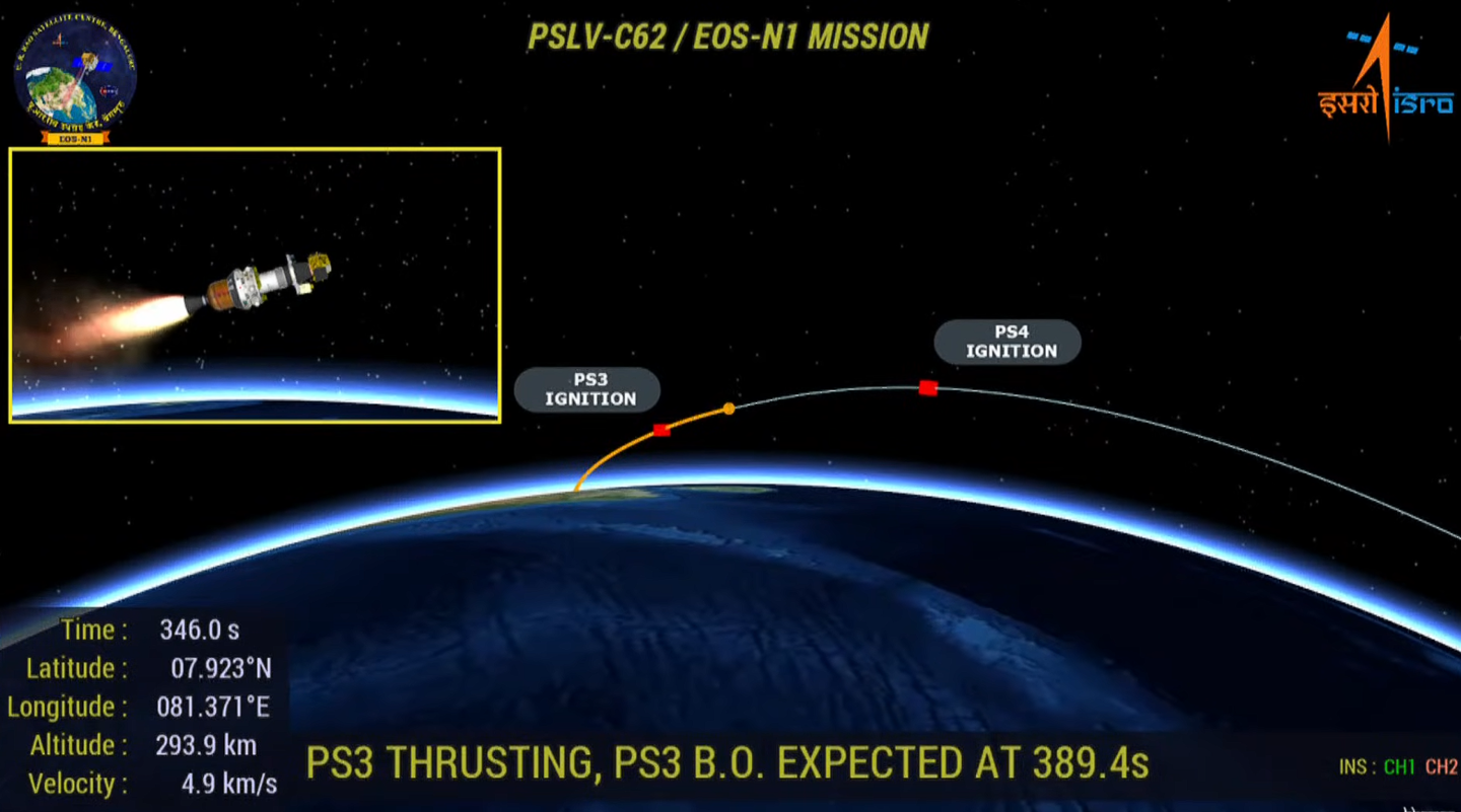 印度空间研究组织官方表示,PSLV-C62 任务在 PS3 阶段的末期遇到了异常,已启动详细分析。