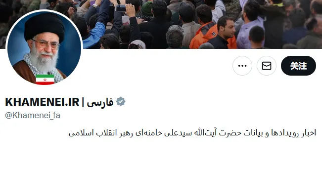 上图为哈梅内伊原先的X账号用户名,下图为修改后的用户名和头像