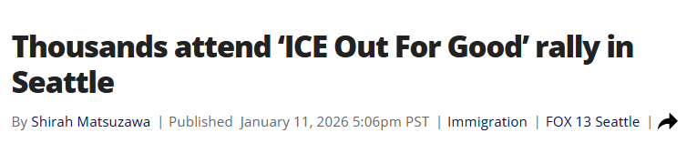 在明尼阿波利斯发生致命的美国移民与海关执法局(ICE)枪击事件后,数千人于周日(11日)聚集在西雅图及华盛顿州西部多地,再度举行集会。