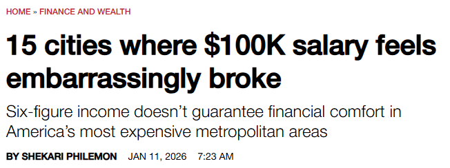 每年收入10万美元听起来已相当可观,但在某些城市,这样的收入却难以满足基本生活需求。