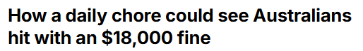 据1月12日报道,在维州,有一条鲜为人知的法律规定,居民在家中进行一项常见的家务劳动,可能会面临高达1.8万澳元的巨额罚款。