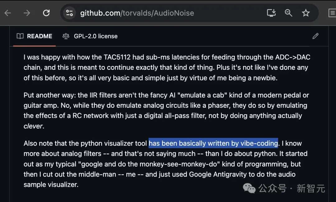 有人发现,Linux之父Linus Torvalds在GitHub上这两天悄悄更新了一个叫AudioNoise的项目。