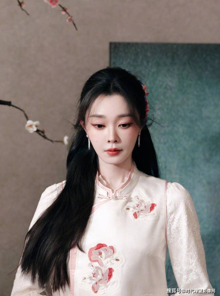 当粉梅枝桠斜斜探入镜头,白瓷底色的新中式旗袍裹着柔缓光影落下来,宋轶站在其中,活脱脱从宋词里走出来的雅致仕女,把东方美学的韵味演绎到了极致。