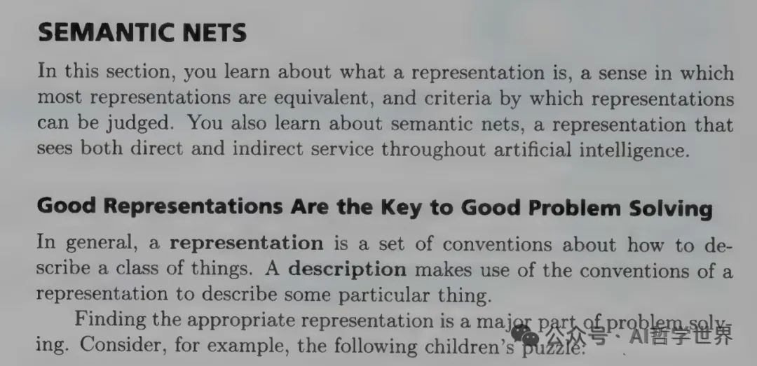 因此,你的表达系统与客观世界的事物的偏差越小,你的表达系统越高效,依据你的表达系统写成的人工智能(电脑程序)的效率就越高。这就是为什么众多人工智能的先驱都不止一次重复:“一个问题解决方案的效率(人工智能程序的效率),就是你对它知识表达的效率”、“倘若你为一个问题找到了正确的知识表达,这个问题也就解决了”......