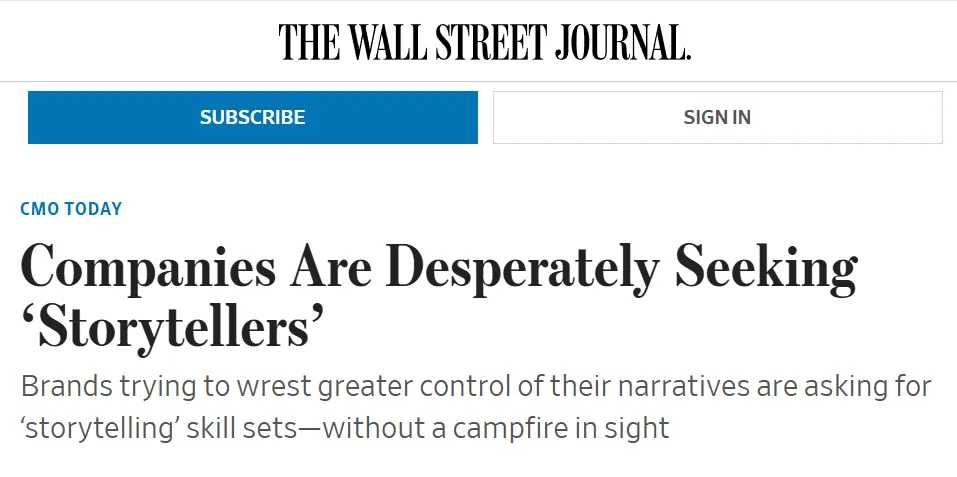 最近《华尔街日报》报道,硅谷科技公司正在拼命寻找会讲故事的人,Chief Storyteller首席讲故事官正在成为科技圈的香饽饽。