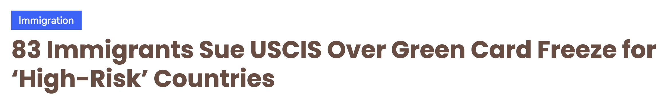 昨天,83名合法居住在美国的移民正式向马里兰州联邦地区法院提起诉讼,控告美国公民及移民服务局(USCIS)无正当理由冻结其绿卡申请。这起案件的原告包括57名主申请人及其配偶、子女,全部通过合法途径在美生活与工作,却在绿卡审批的最后阶段,被一项突如其来的政策拦在门外。