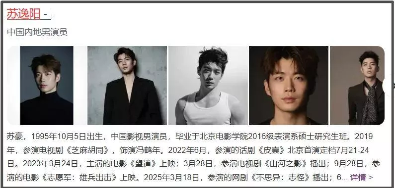 至于苏逸阳,名气还不如何昶希,连个演员主页都没有。