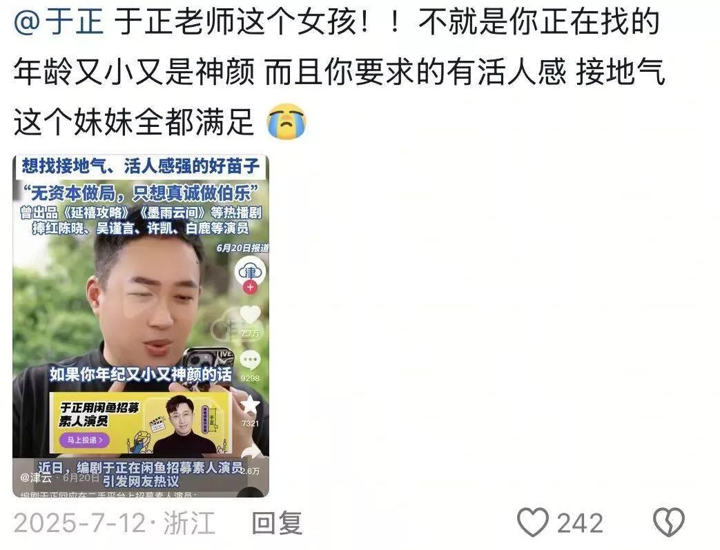 又是被于正看上,当时的于正正在全网寻找纯素人演员
