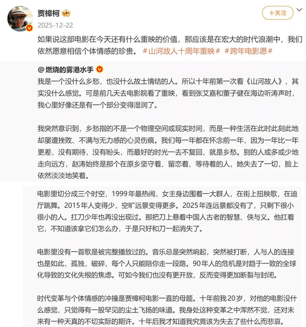 (贾樟柯导演《山河故人》十周年重映)