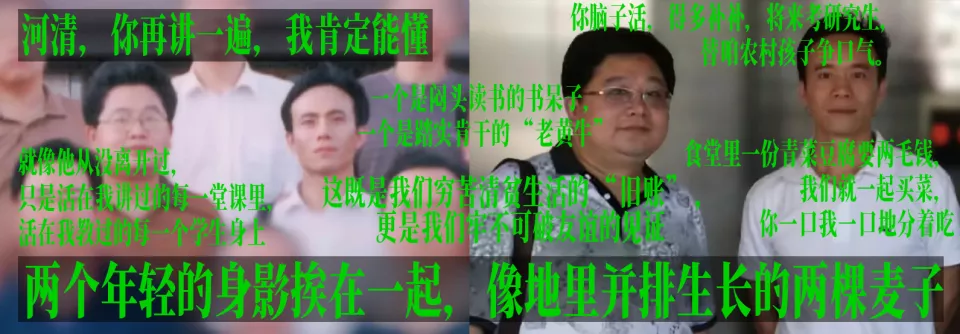 “老辈子写文没轻没重的”源自网友对张河清教授缅怀因公殉职友的悼文的评价。两人清贫的大学时期,以两颗鸡蛋建立的友谊成为“一根藤上的两个苦瓜”。