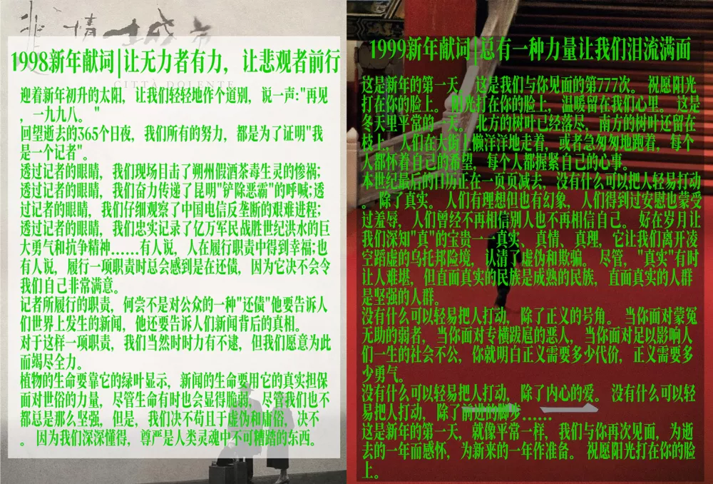 (南方周末1998、1999、2025、2026年新年献词节选)