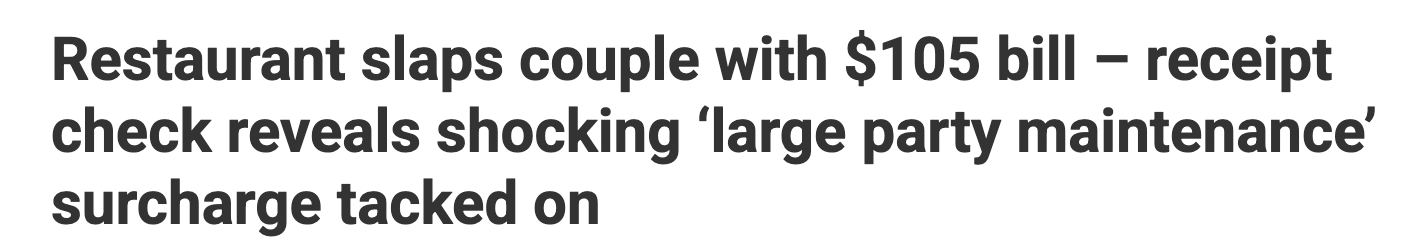 收据上赫然多出一项20%的附加费用,标注为大型派对维护费。这对夫妇随即感到难以置信:他们只有两个人,既不是团体订位,也未包场,更未享受任何“派对级”服务。“这个费用居然是收给两个人的?”顾客在社交平台上写道,“菜单没写,服务员没说,结账时就这样自动加进来,像小费一样自然。”