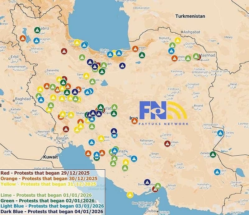伊朗反政府抗争行动已扩散至全国108 座城市,冲突也逐渐升级。(X截图)