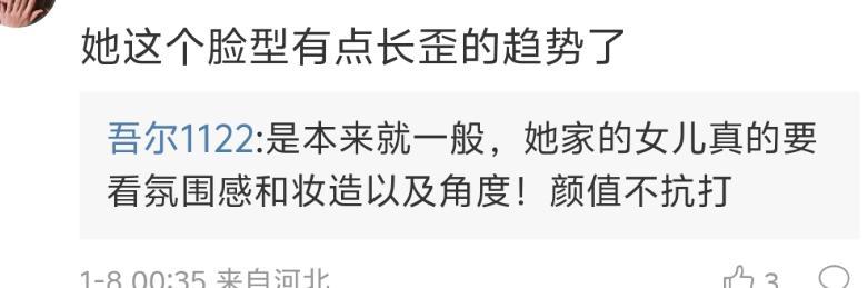 细看会发现,她最大的问题是脸型长开了,现在的脸型变得比较扁平,有点大饼脸的感觉。