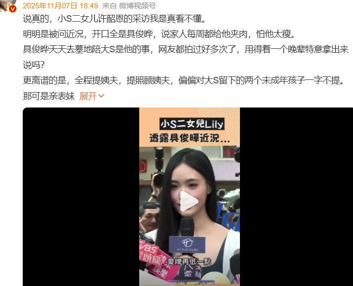除了颜值,她这次的采访也被网友嘲了,她分享了很多家长里短,竟然一句话都没提到姨妈大S。