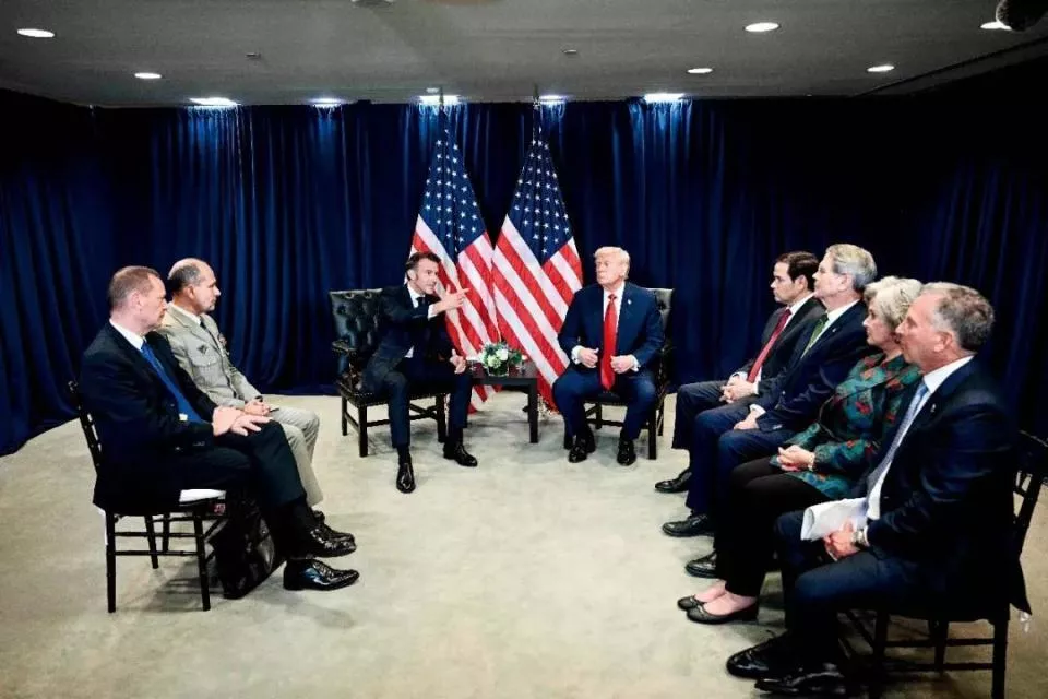 2025年9月23日,美国纽约,美国总统特朗普与法国总统马克龙在联合国大会期间举行双边会晤。图/视觉中国