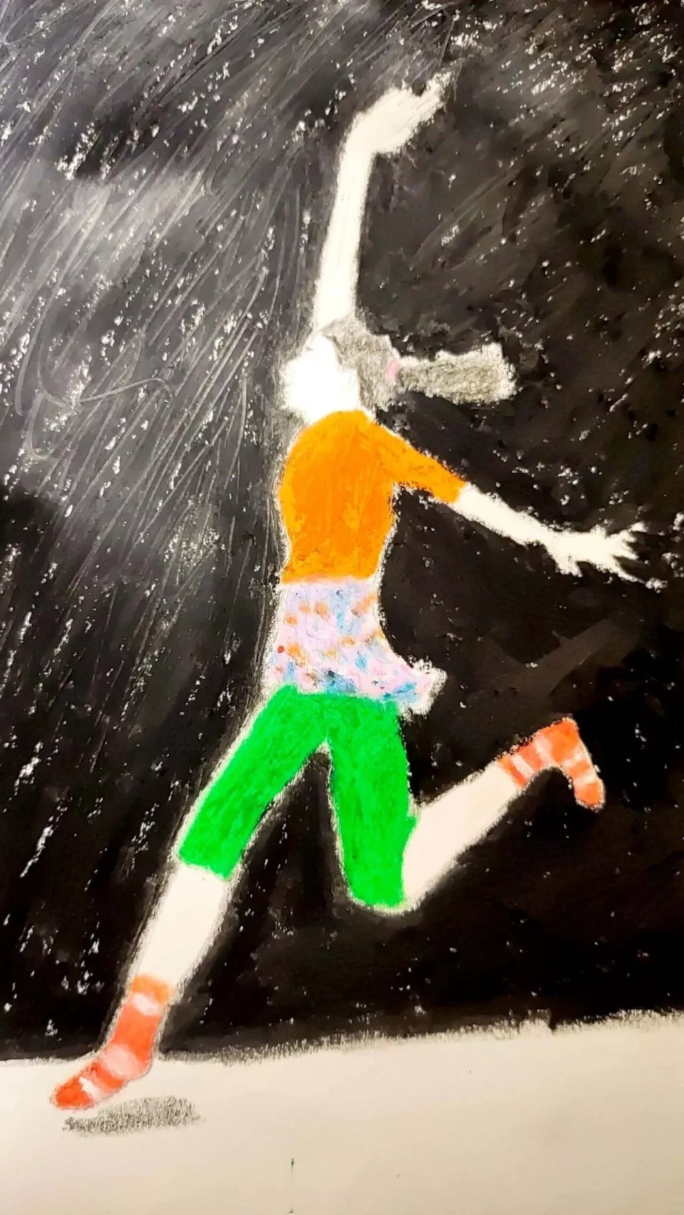 李文丽作于2023年9月23日,在参与法国舞剧《盛会》演出后,记录下自己在舞台上的腾空一跃。“那一刻是最最真实的自己,而不是谁他女儿、谁他媳妇儿、谁他妈了,我就是我自己。”