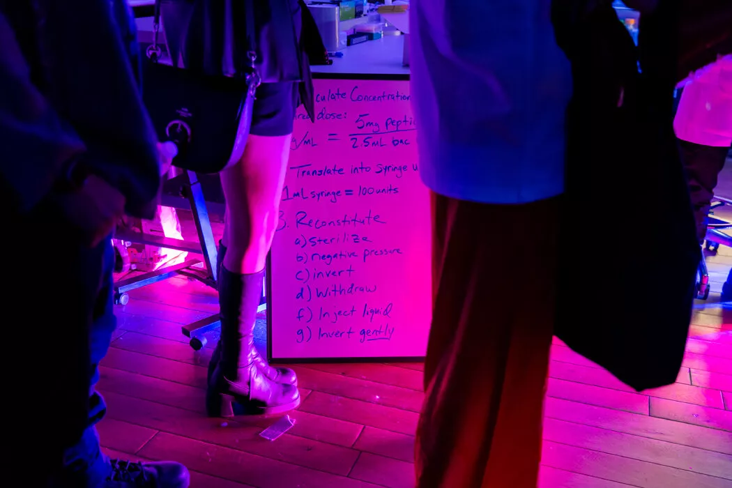 旧金山Frontier大厦举办的一场肽派对设有一个自己动手调配肽类的工作坊,并有DJ现场表演助兴。
