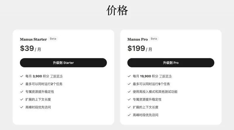 2025年3月28日,AI Agent产品“Manus”公布的收费方案