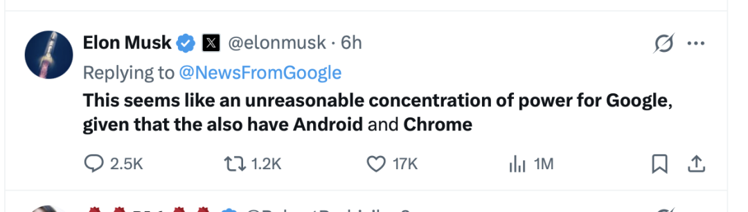 消息公布数小时后,特斯拉与x AI创始人埃隆·马斯克在X平台连续发文,对这一合作表达强烈不满,称其将进一步加剧科技行业的“权力集中”。