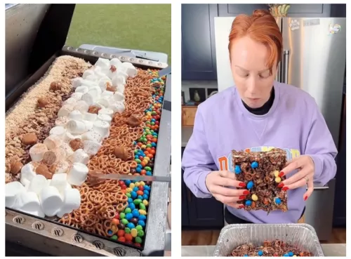 在国外社交媒体上搜索美式甜品制作方法,内容绝对让你大开眼界,很多食谱都是九极糖分炸弹,甜饼干碎配奶油,然后往里面哐哐倒入糖豆、MM豆、棉花糖作为夹心,拌入大量的花生酱或者焦糖酱调味,然后最外面再盖上一层糖霜和碎糖当点缀。