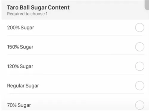 俗话说,入乡就要随俗,雪王也针对美国消费者的口味做了“改进”。在选购页面上,不仅有我们熟悉的半糖、七分糖、正常糖选项,还提供了三个美国特供加甜选项,120%糖度、150%糖度、200%糖度。