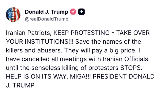 ■ 特朗普:伊朗爱国者们,继续抗议(图)