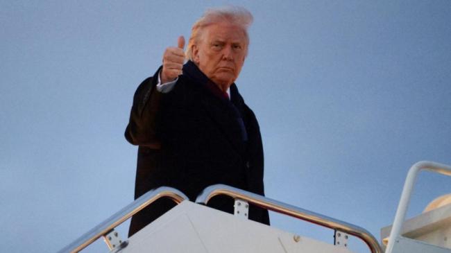 资料图:2025年12月9日,美国总统川普在马里兰州安德鲁斯联合基地登上空军一号,前往宾夕法尼亚州。(图片来源:Alex Wong/Getty Images)