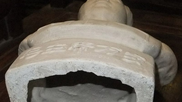 一次,我垫凳子爬到神柜上,取墙上挂的黄背包,下来时,一不留神,脚蹭到了毛主席石膏像。石膏像在神柜上翻转了一下,“啪”的一声掉在地上。