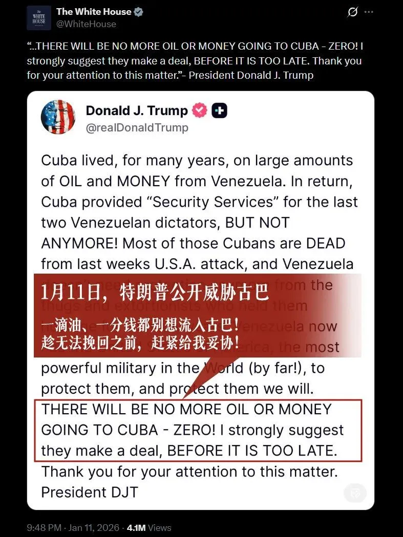 如今唇亡齿寒,古巴更是被特朗普公开威胁