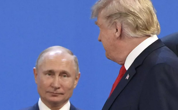 Vladimir Poutine et Donald Trump se dévisagent, lors d'un sommet du G20 à Buenos Aires, le 30 novembre 2018. Se disant jadis en mesure de stopper le conflit en vingt-quatre heures à peine, Donald Trump a admis que le dossier était plus compliqué qu'il ne le pensait. AFP - JUAN MABROMATA