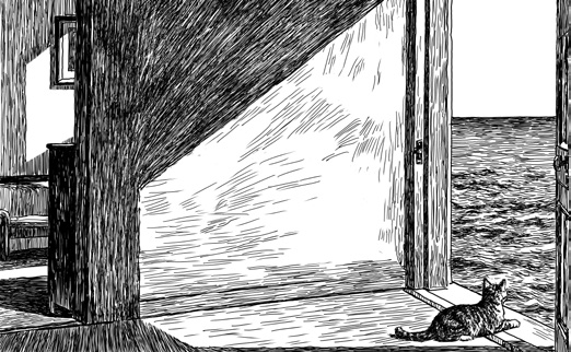 八不目不转睛看着丙,像看一个傻子。丙迎视八不,看回去。一猫一人对眼神,一个无邪,一个严肃,时间在流逝,两个都渐渐茫然,丙眨眼说你赢了。