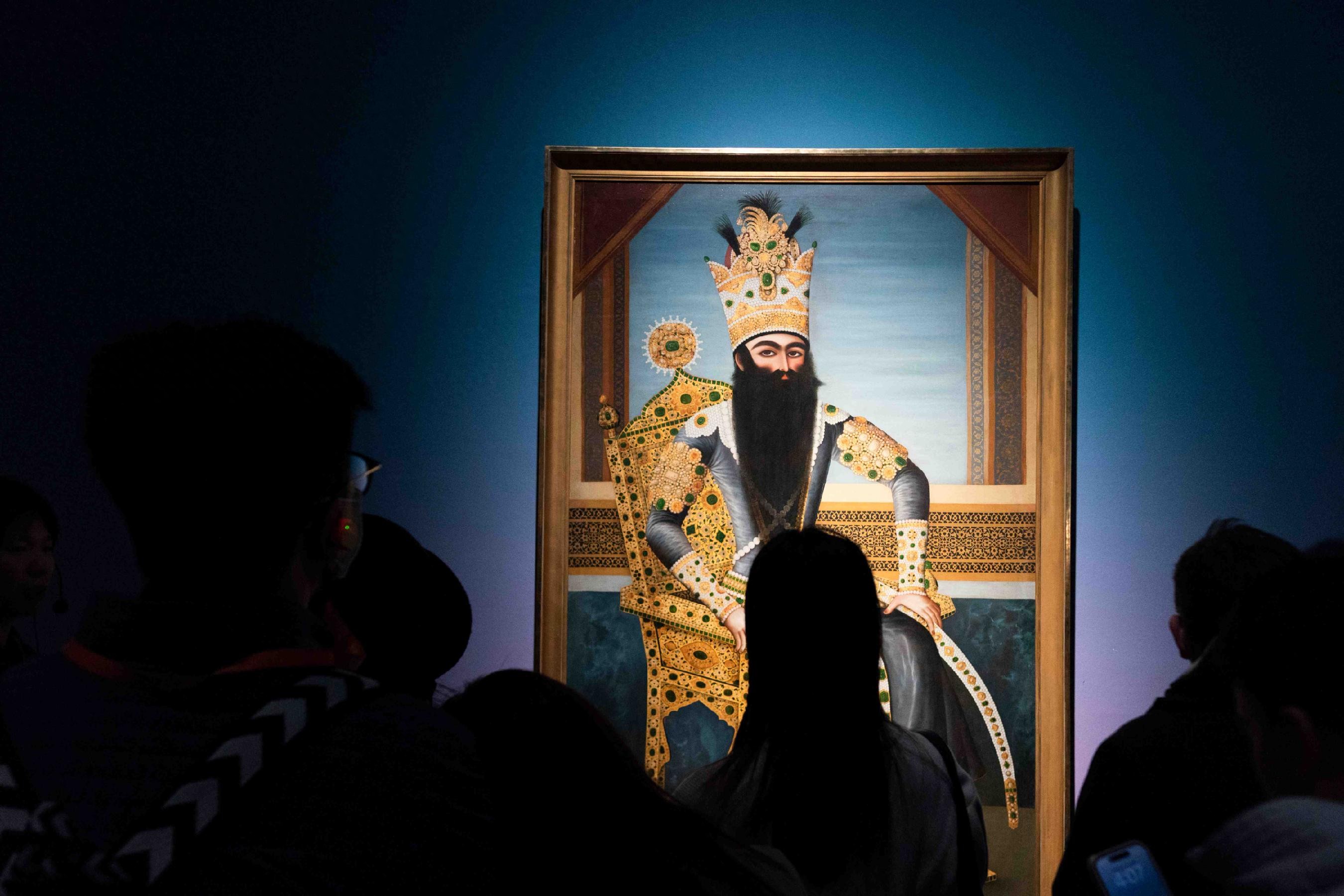 展览还深入探讨了19世纪下半叶什叶派宗教仪式的视觉表达,如用于丧葬游行的仪仗生旗、塔齐耶仪式中的武器与盔甲,以及卡扎尔王朝的肖像画作(如法特赫-阿里·沙阿·卡扎尔肖像,1800-1806年,布面油画,米尔·阿里作,此画曾作为外交礼物赠予法国皇帝拿破仑一世)。这些展品不仅承载历史,更成为跨文化对话的桥梁。