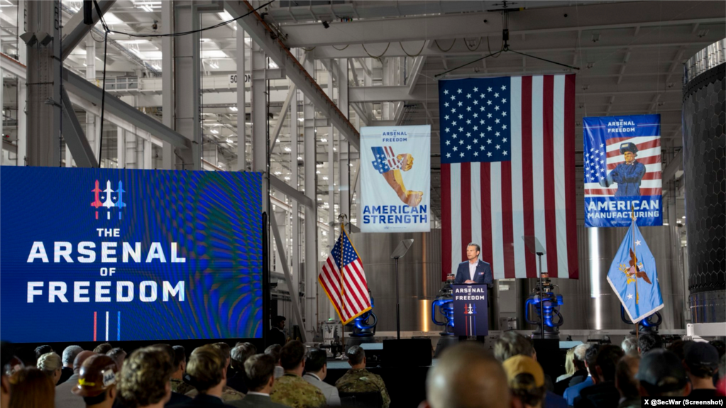 战争部长海格塞斯在德克萨斯州布朗斯维尔的SpaceX发表讲话,这是“自由兵工厂”全美巡回演讲活动的一部分。(2026年1月12日)