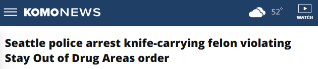 上周日(11日)早上,西雅图警方在中国城-国际区逮捕了一名39岁男子。此前,警方发现其携带多把固定刀刃刀具,并违反了法院禁止其进入这片区域的限制令。