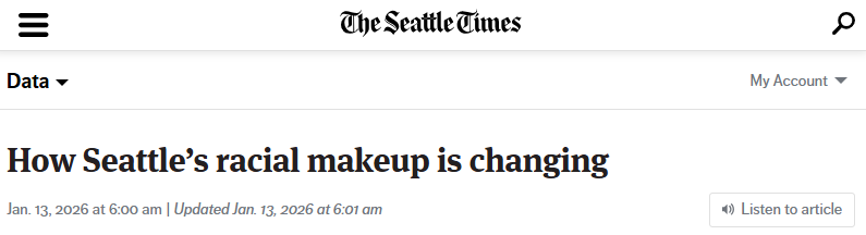 报道中还提到,金县第二大城市贝尔维尤的种族多样性仍高于西雅图。2024年,贝尔维尤人口约为15.44万人,其中亚裔居民约7.54万人,占比接近49%;白人居民约5.01万人,占比约33%。