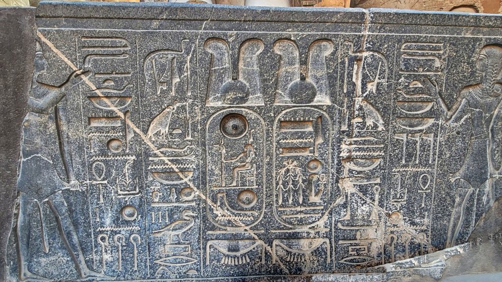坐像底座法老拉美西斯二世的王名圈(椭圆形框,用于刻上王室的名字)