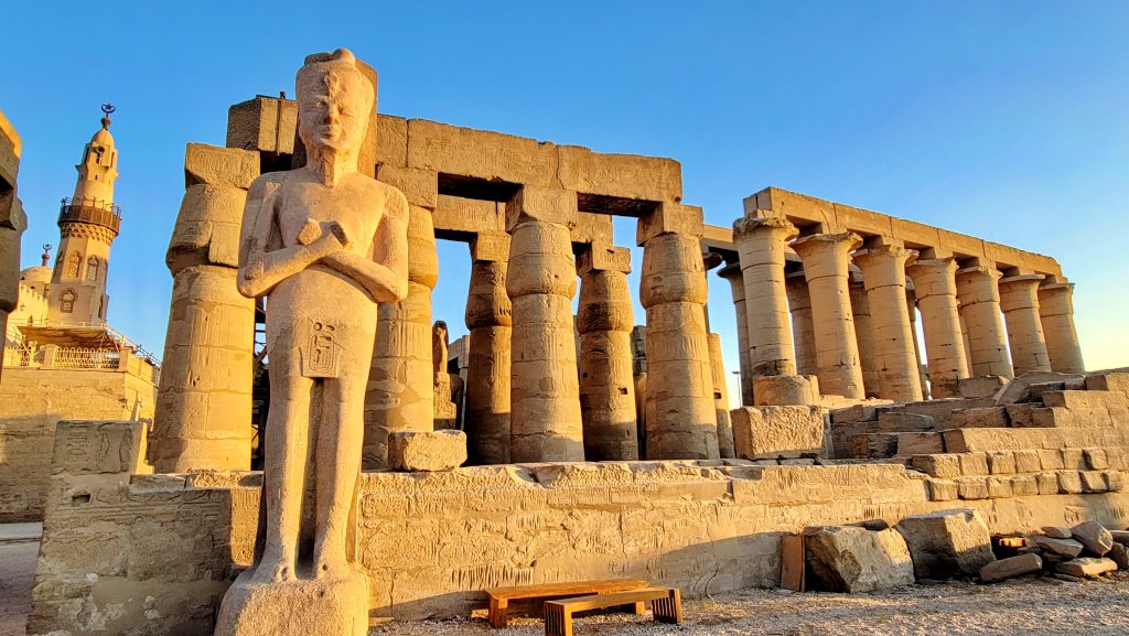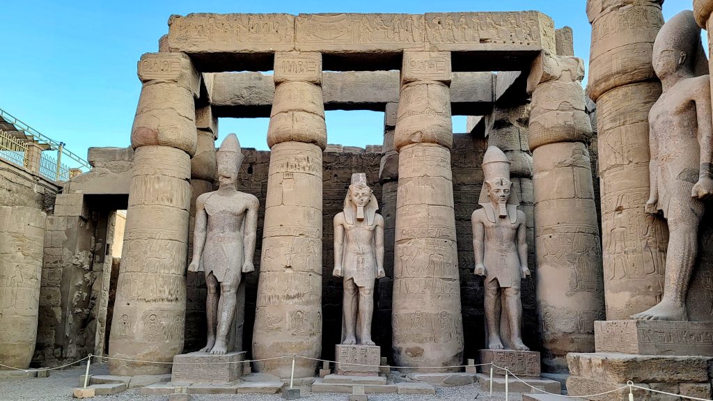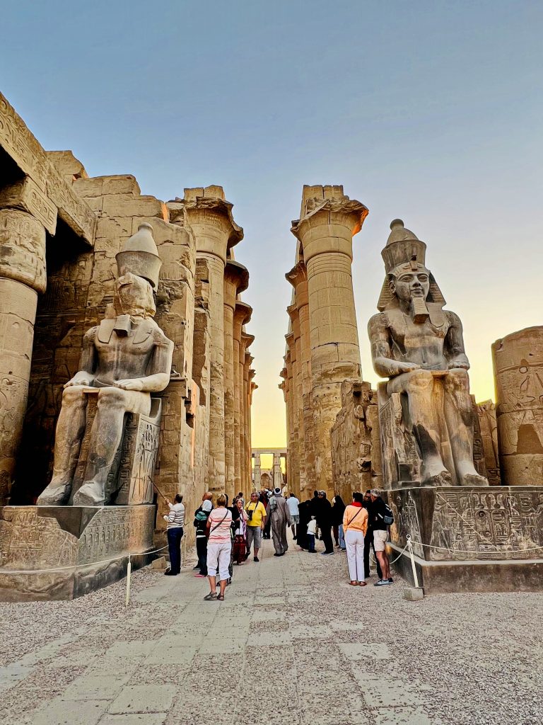卢克索神庙是古埃及最重要的“欧佩特节”终点,每年洪水季,阿蒙神的圣船从卡纳克沿尼罗河或神圣大道抵达卢克索,象征法老获得神的再次加冕与宇宙秩序的更新。入口处拉美西斯二世的巨像与方尖碑至今仍在守望这条古老的神圣通道。在夜色与灯光下行走于卢克索神庙,你会强烈感到它不是“废墟”,而像是一座仍在呼吸的王权圣所。