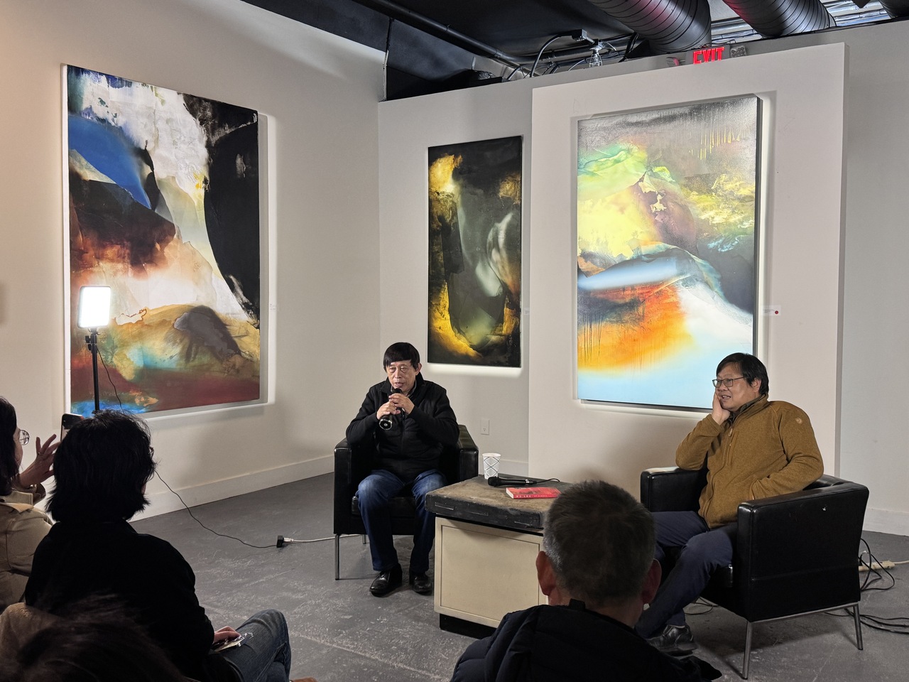 卢新华(左)在矽谷谈文学与信仰。(记者徐蓓蓓/摄影)