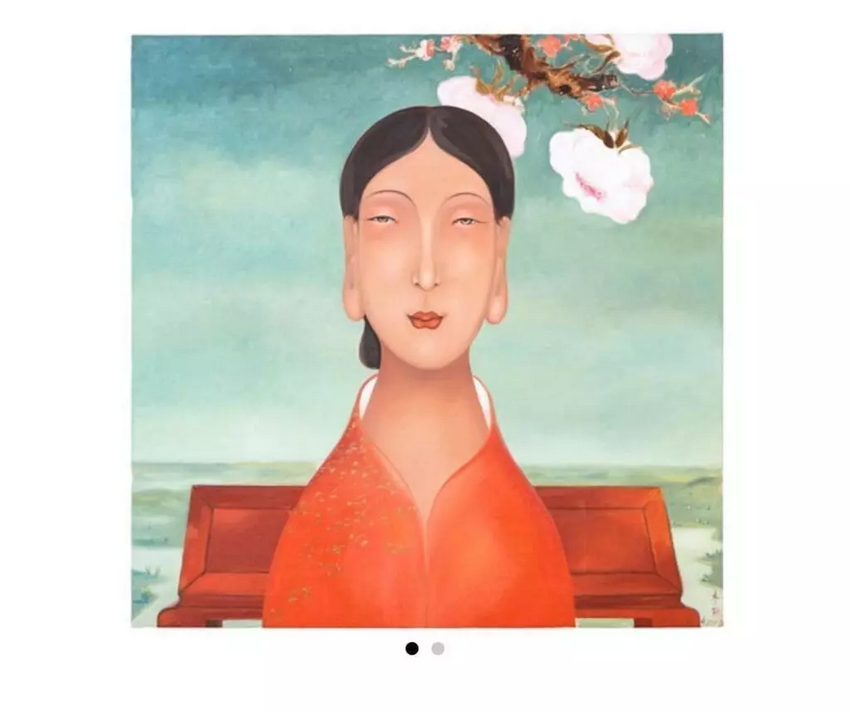RFI:那我们接着聊你之后的经历吧。后来你来到法国,我注意到2000年之后,你的绘画似乎进入了另一种风格阶段。让我印象非常深刻的是,你画了很多同一个女性形象。画中的女性无论是神态还是眉眼,都让我联想到佛像。再到最近的一些作品,你开始使用拼贴的方式,而且其中可以看到非常强烈的宗教痕迹。所以我想请你作为一位创作者,跟我们讲讲你来到法国之后的创作经历,以及你的艺术风格是如何发生转变的?