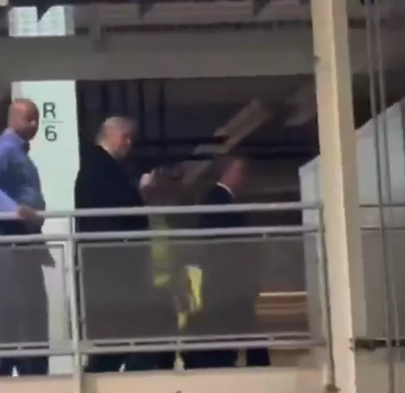 美国总统川普被抗议者称为“恋童癖保护者”,当场比中指回应。(图撷自“@mrsunshinebaby”X帐号)