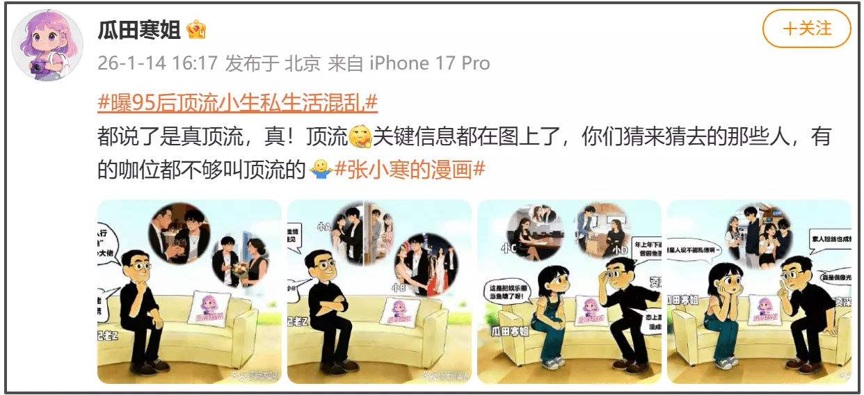 内娱又来瓜了!狗仔爆95后真顶流小生私生活混乱,不仅有男大佬女大佬保驾护航,还和多位女星有关联,连素人粉丝都没放过,这位男顶流到底是谁呢?