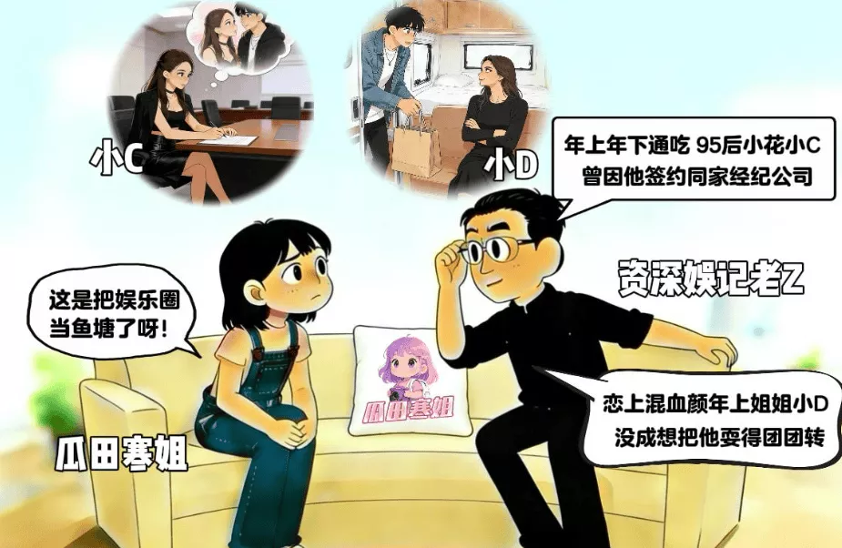 狗仔给出了几个关键信息——科班出身和国民闺女A因戏生情、综艺捆绑反差萌女星B、95后小花C和他签同一个公司、恋上混血年上姐D。