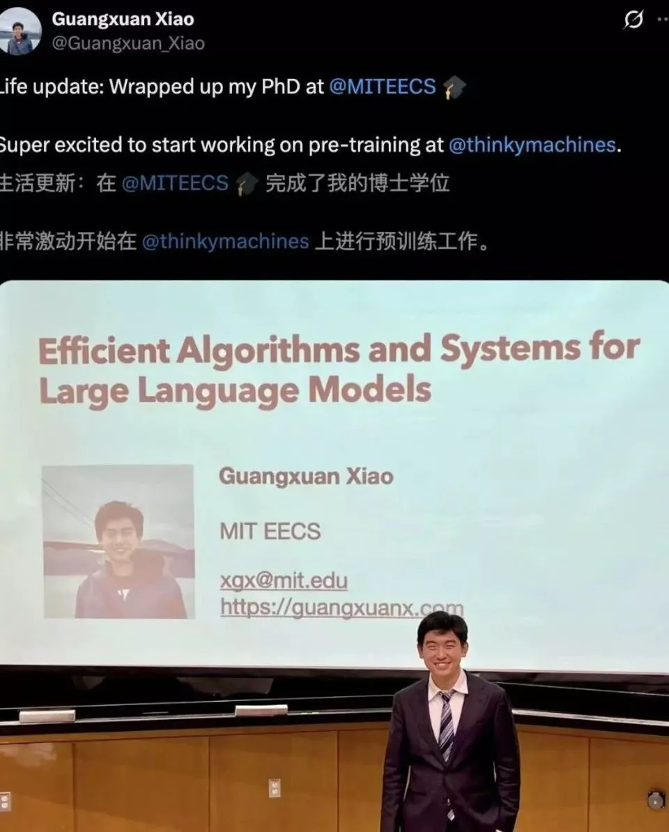 最近,肖光烜(Guangxuan Xiao)在社交媒体官宣,刚刚完成了MIT博士学位。