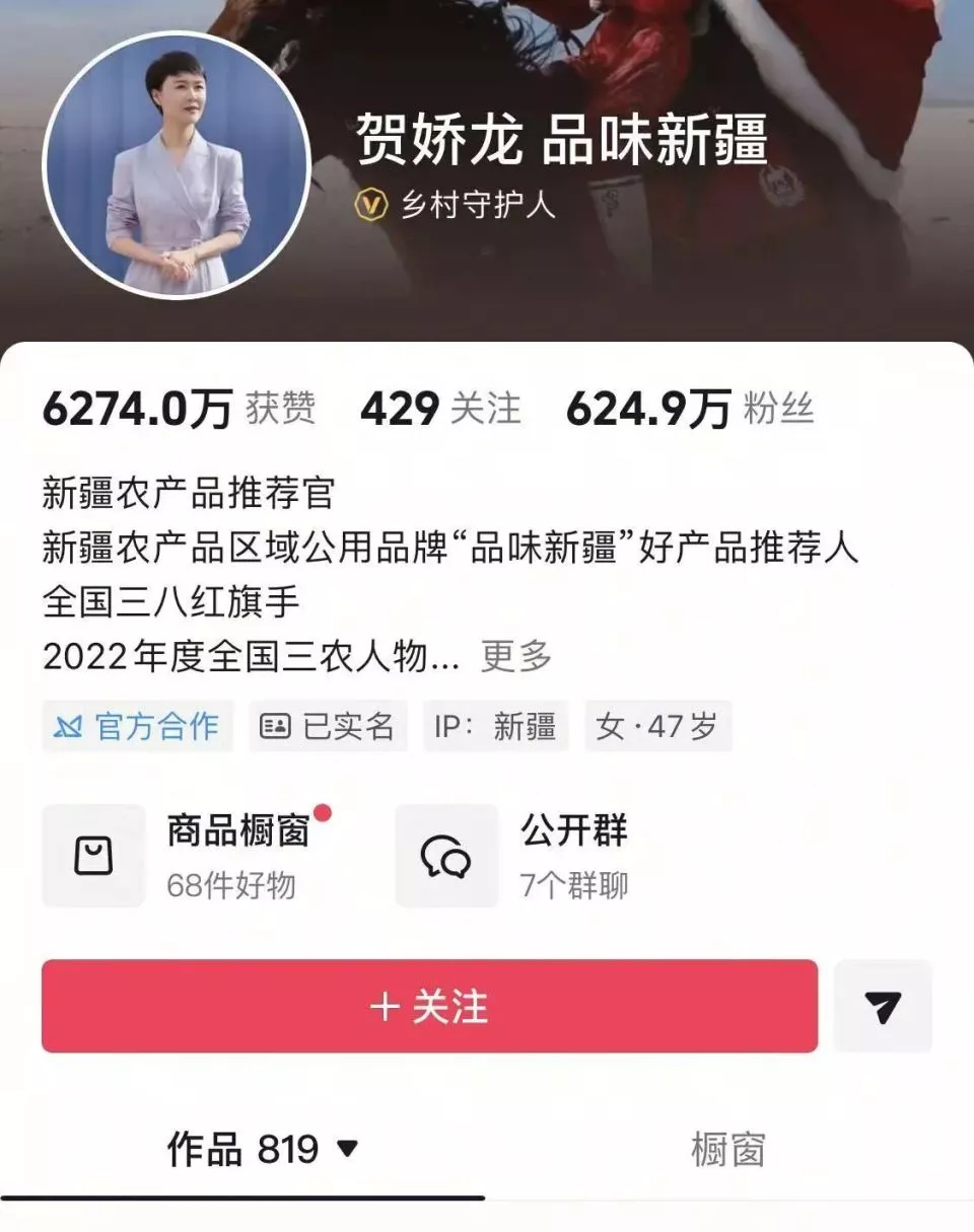 贺娇龙曾任新疆昭苏县副县长,2020年其身披红斗篷,在雪原飒爽策马,为当地旅游项目代言的短视频火遍全网。翌年4月,贺娇龙从昭苏县调往伊犁州担任文旅局副局长。随着贺娇龙爆火“出圈”,她所在的昭苏县乃至伊犁州也被带火,之后她便成为“新疆文旅推荐人”之一,继续带起直播团队朝着乡村振兴前行。