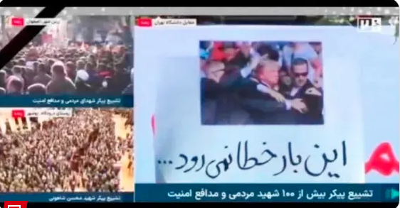 伊朗国家电视台周三播出一张带有明显暗示意味的画面,画面中是川普在2024年宾夕法尼亚州巴特勒(Butler)竞选集会上遭遇枪击时的影像,并配以文字称:“这一次不会失手。”