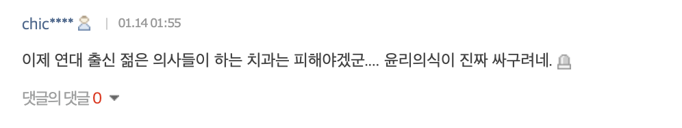 “这下得避开延世大学毕业的年轻牙医们开的诊所了....道德意识真是廉价啊。”