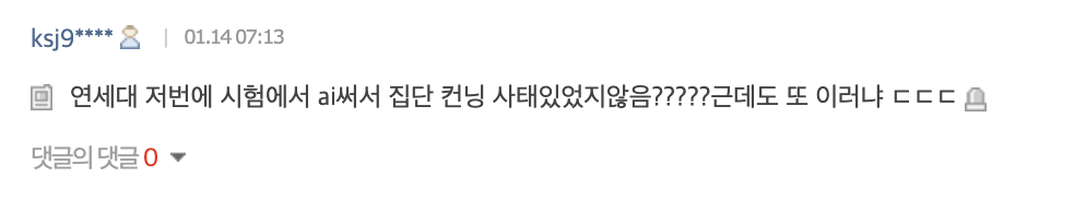 “延世大学上次考试不是有用AI集体作弊的事件吗?????怎么又搞这种事 啧啧啧。”