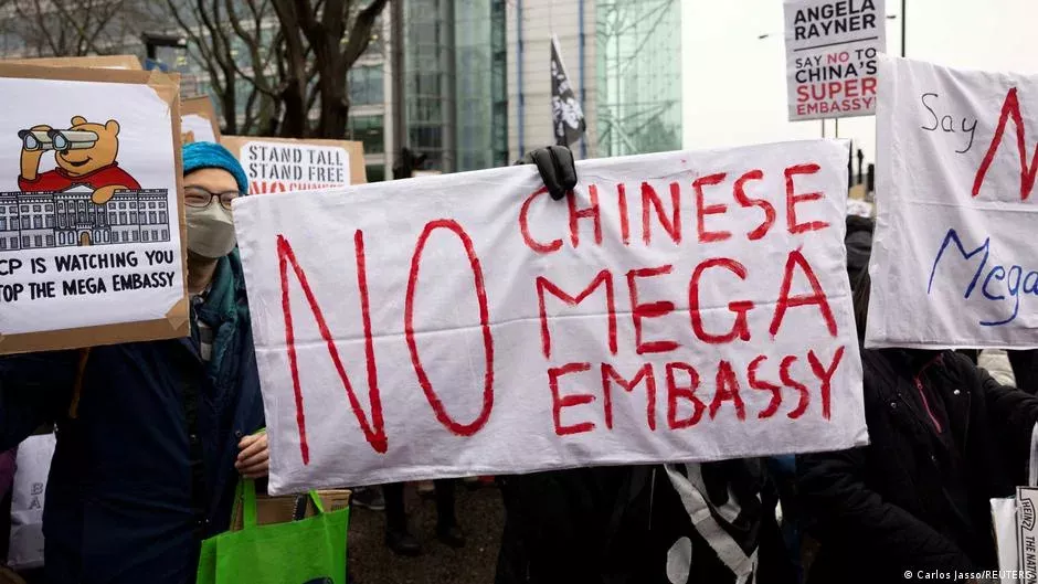 (德国之声中文网)英国多党派议员此前敦促政府驳回中国建造新使馆的申请。批评人士担心,新使馆所在的这一大片地块靠近伦敦金融区以及关键的数据电缆,可能会成为间谍活动的基地;此外,这一将成为欧洲最大的“超级”使馆会加强对中国海外异议人士的监控和恐吓。
